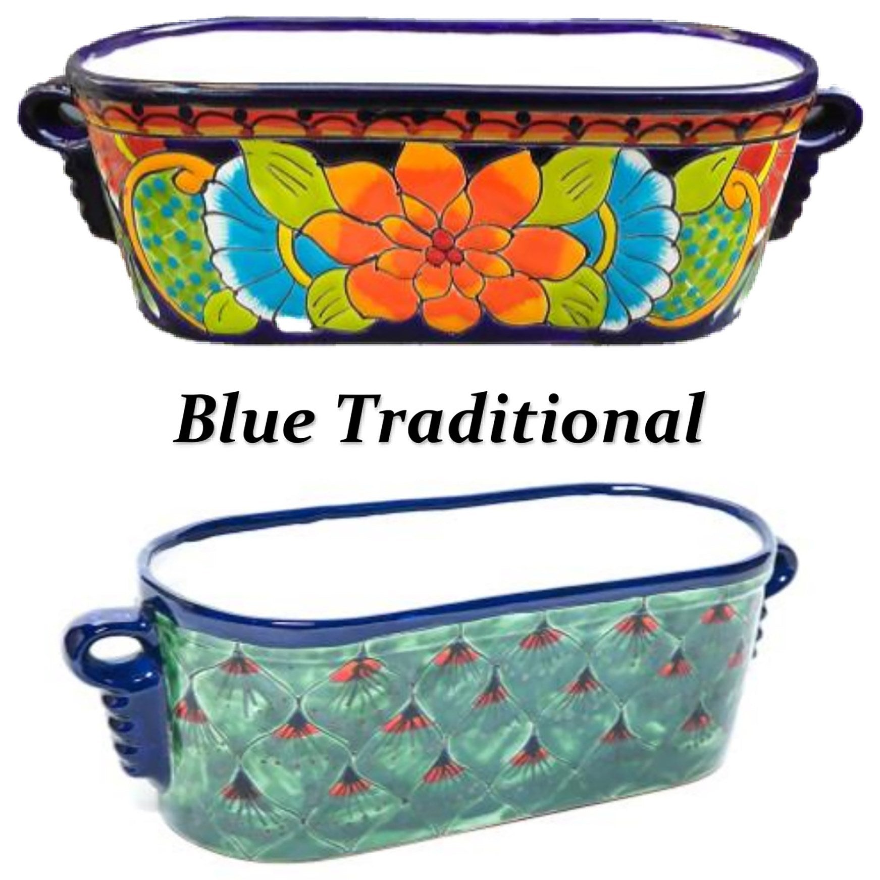 Talavera Colors Window Boxes are made of a special clay that is glazed and fired twice for durability. Authentically made in Mexico. 100% hand painted. Lead free. Will not fade. These pots are ideal for indoor and outdoor display.