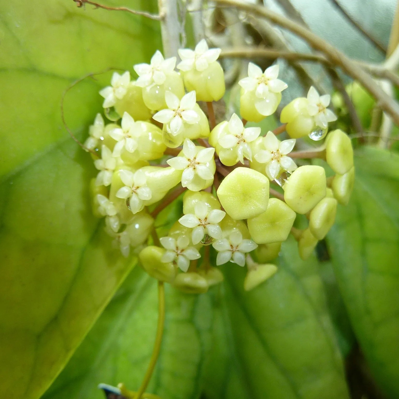 Hoya vitellinoides is a popular vining tropical plant known for its large, leathery leaves with prominent, intricate dark green venation, prized by collectors for its dramatic foliage that can grow up to 10 inches long, thriving in bright, indirect light, well-draining soil, and moderate to high humidity, rewarding patient growers with clusters of pale yellow-white, sweet-smelling flowers.