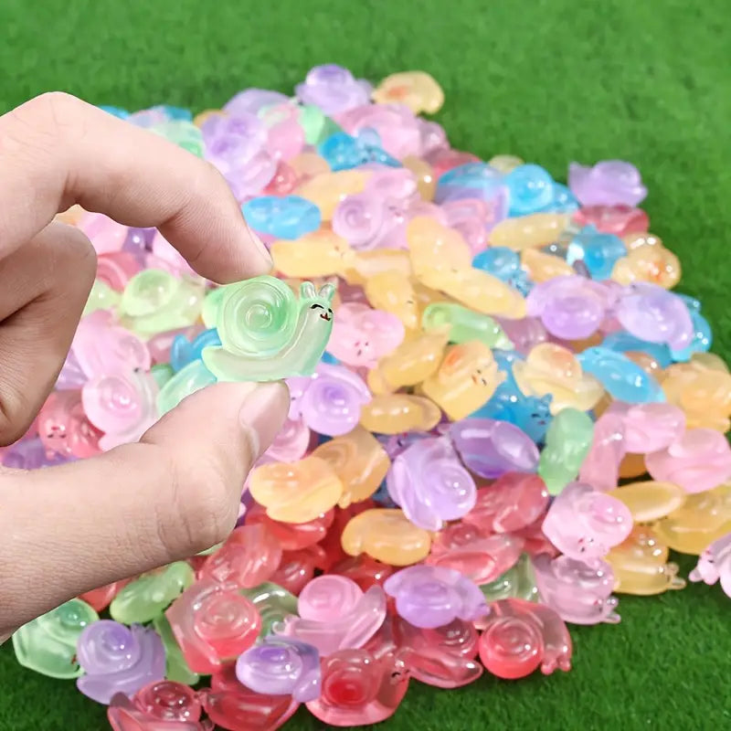 Miniature resin snail that glows in the dark. Use in terrarium decoration or home/office decor.