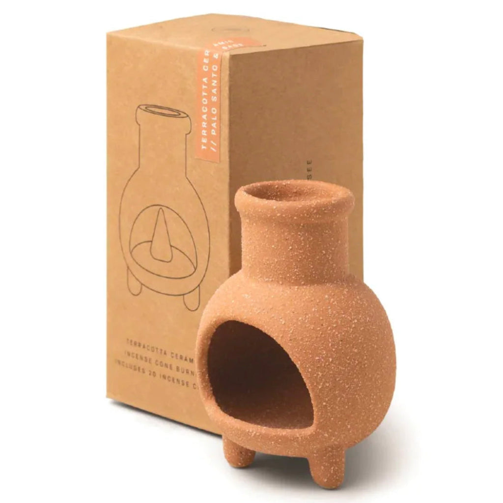 Ignite and be transported to a peaceful fireside retreat with our Ceramic Chimnea Incense Cone Holder. This incense cone and holder set will fill your home with a flameless fragrance. Pair this accessory with our cowboy hat incense burners and cowboy boot match stick holders for a cohesive ceramic theme. Please recycle the packaging!